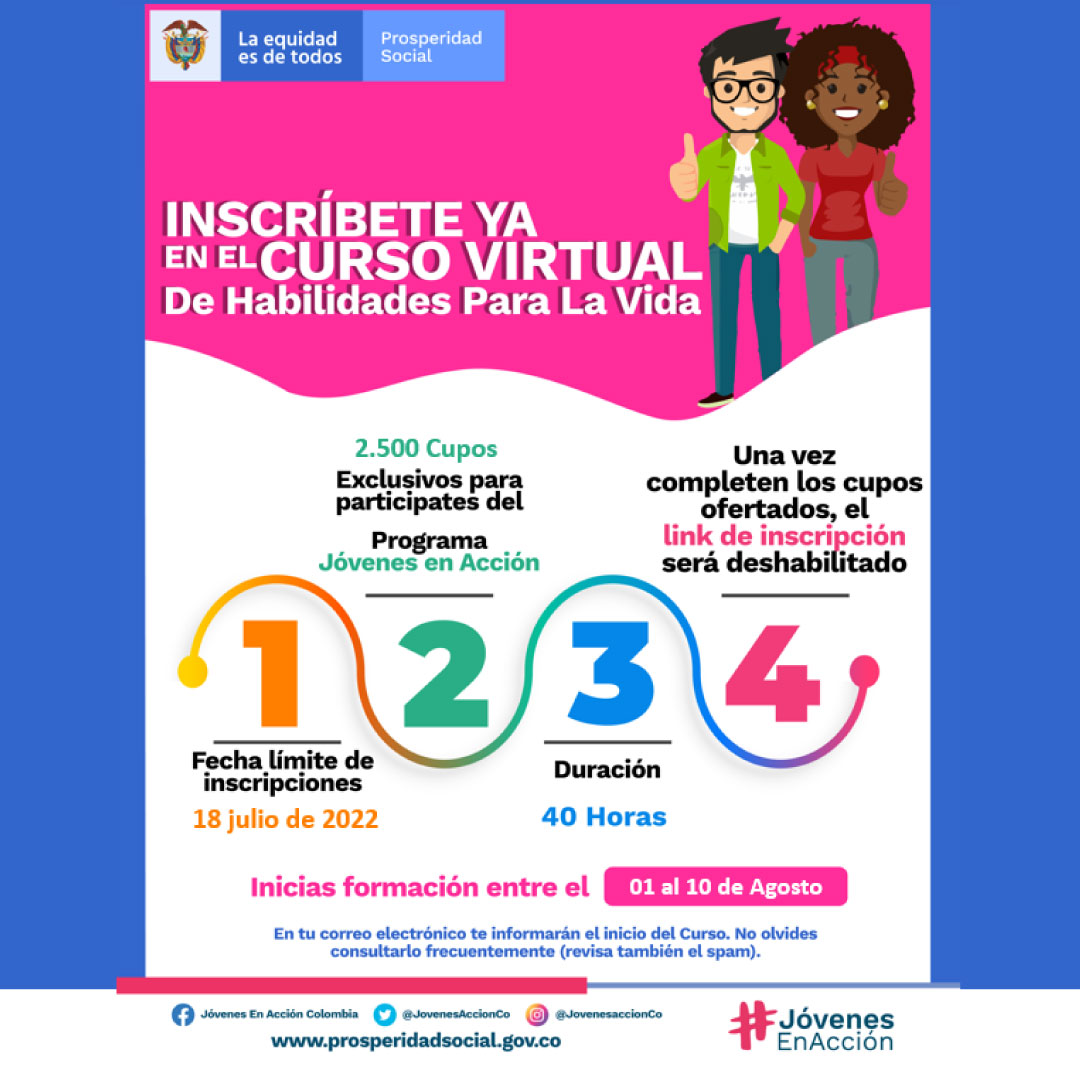 Bienestar General Noticias Curso Virtual de Habilidades para Vida JEA julio 8, 2022. La fecha límite de inscripción es hasta el 18 de julio 2022.