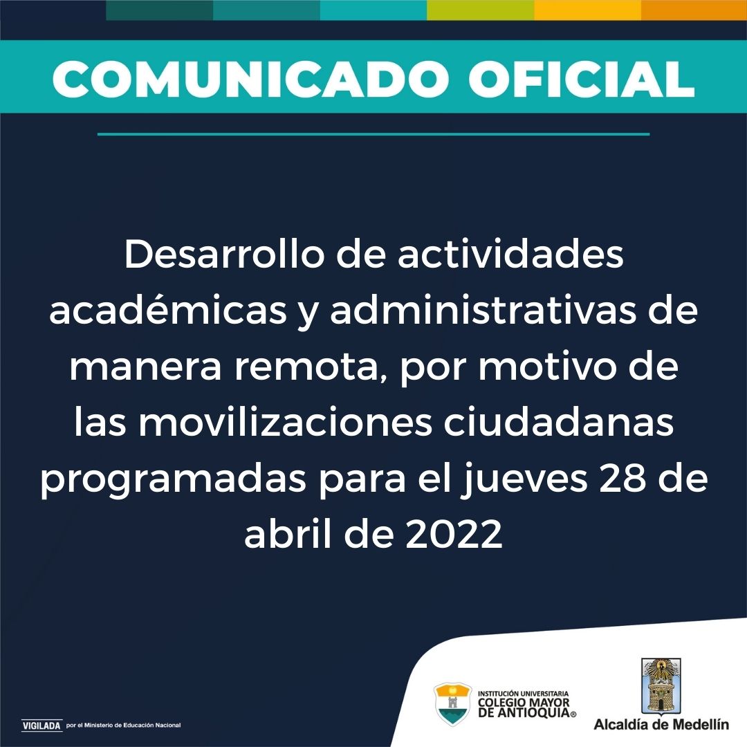 General Noticias Desarrollo de actividades académicas y administrativas el jueves 28 de abril abril 26, 2022. Conoce el comunicado del Consejo Académico.