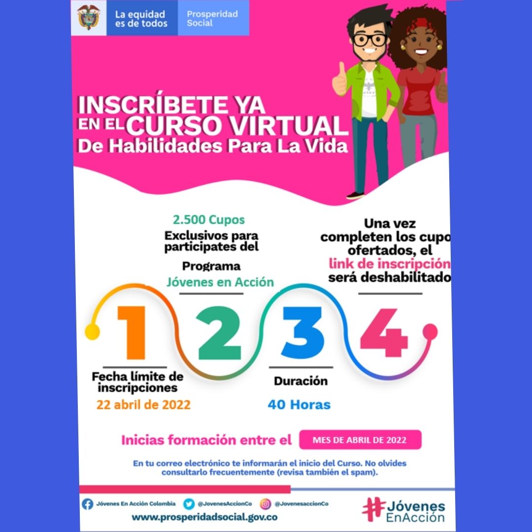 Bienestar General Noticias Curso virtual de habilidades para vida abril 19, 2022. Haz parte de la segunda cohorte del curso.