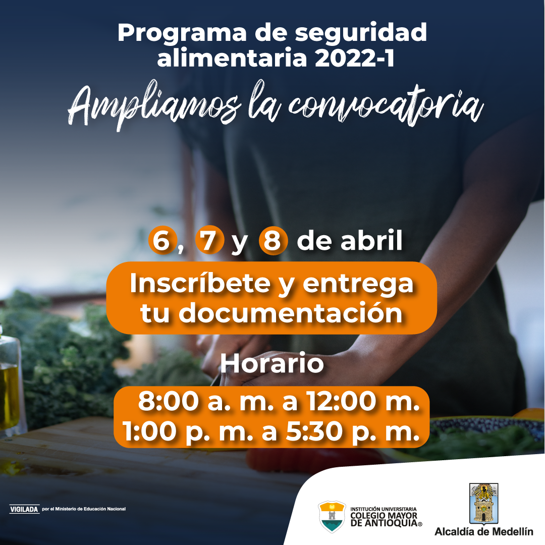 Bienestar General Noticias Ampliación de postulación al programa de seguridad alimentaria 2022-1 abril 6, 2022. Lee la información y postúlate