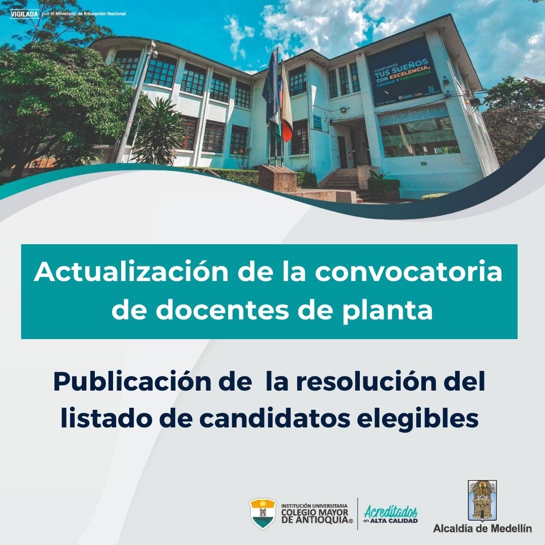 General Noticias Convocatoria abierta para tres plazas docentes de planta diciembre 10, 2021. Publicación de la resolución del listado de candidatos elegibles.