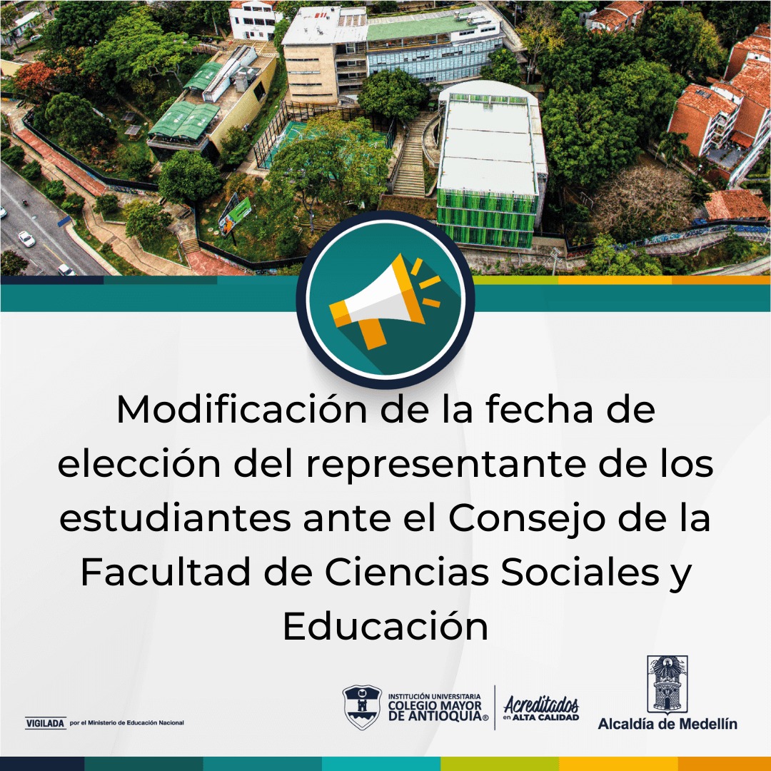 General Noticias Modificación fecha: elección representante de los estudiantes Fac. Ciencias Sociales y Educación septiembre 24, 2021. Conoce la resolución.
