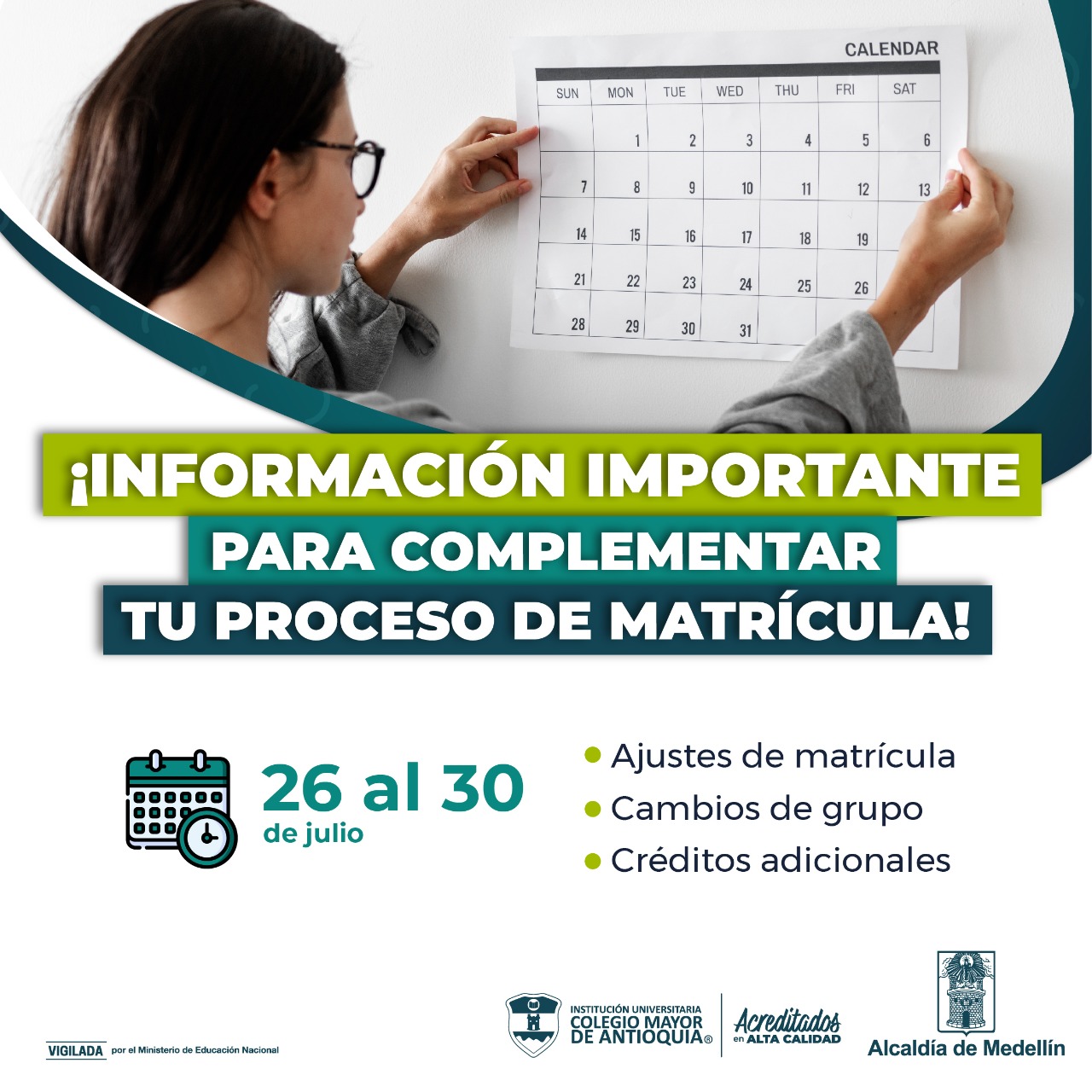 General Noticias Ajustes de matrícula, cambio de grupo y créditos adicionales julio 28, 2021. Conoce las guías.