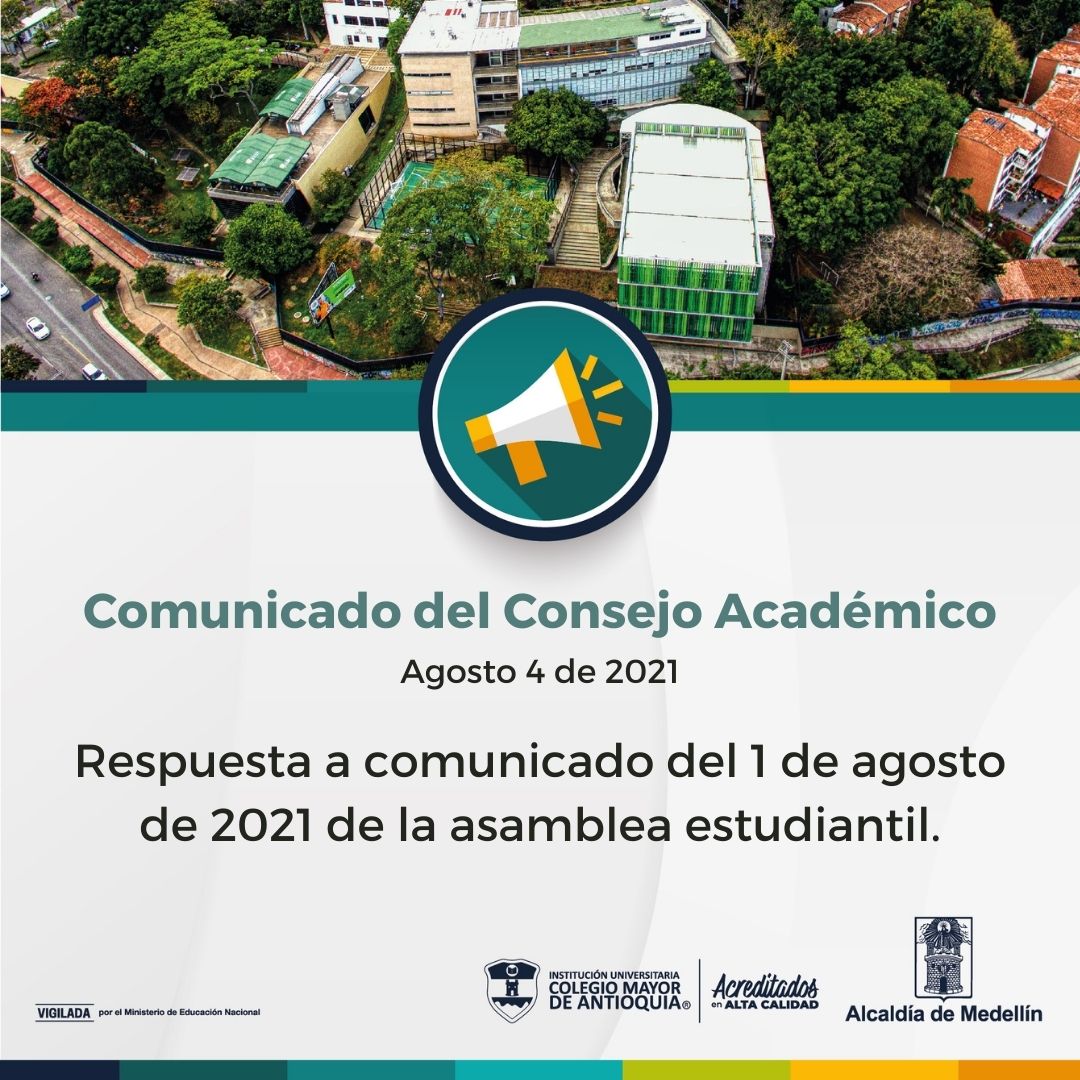 General Noticias Comunicado de respuesta a comunicado de la asamblea estudiantil agosto 5, 2021. Conoce el comunicado del Consejo Académico.