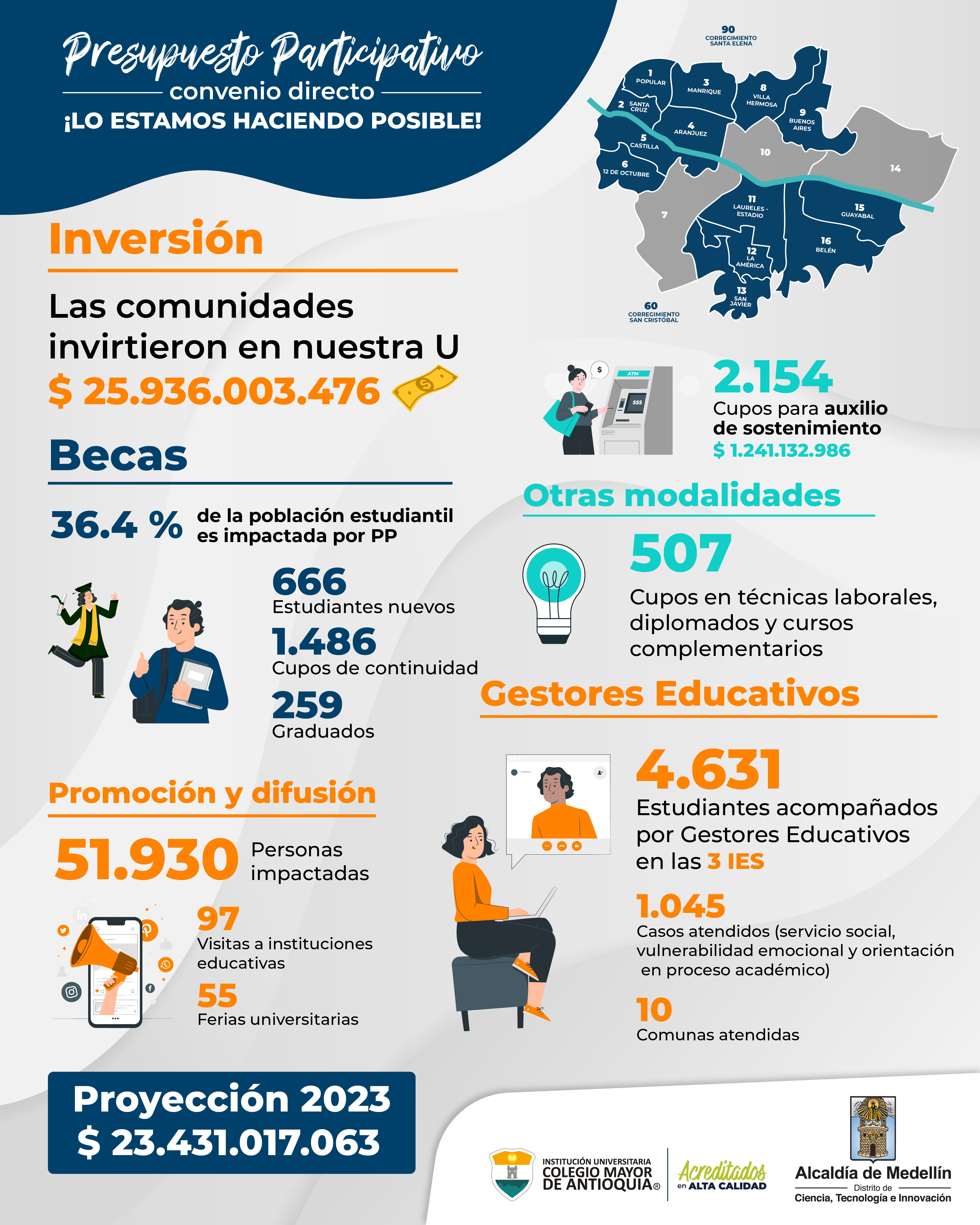 En cumplimiento de la Ley 1712 del 6 de marzo de 2014, Presupuesto Participativo Colmayor pone a disposición de la ciudadanía sus mayores logros para este 2022.