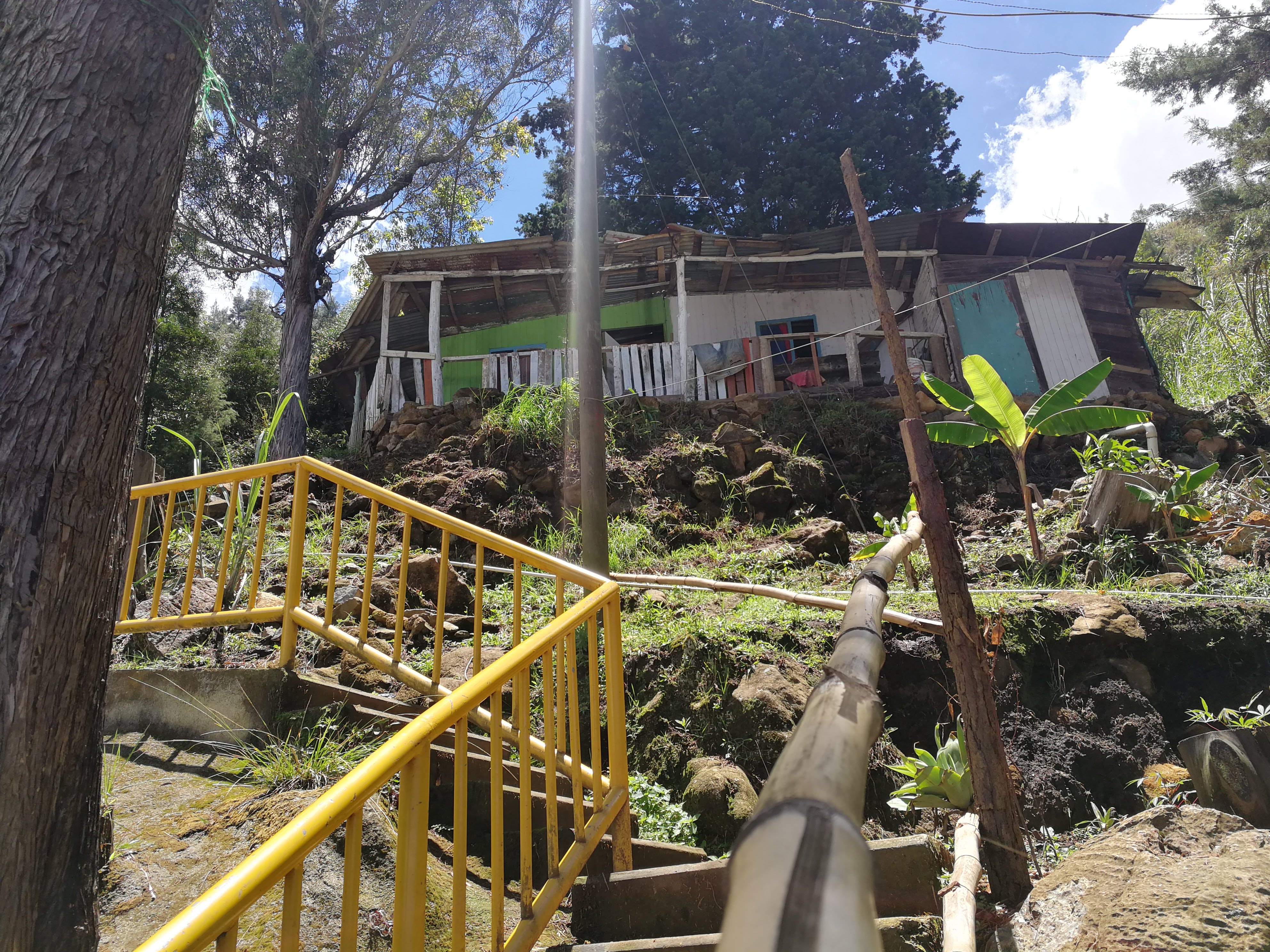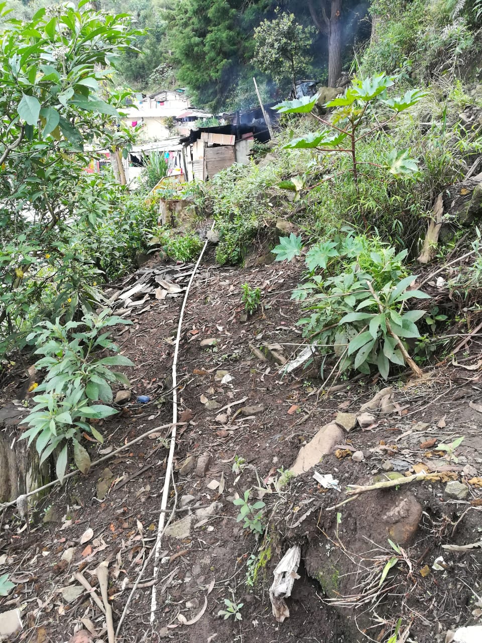 En la parte arriba del barrio, a partir de la observación comunitaria, se logró identificar un desgarre y una pendiente altamente inclinada. Desde el 2012 hubo una fuga de agua y se generó en este punto el deslizamiento de piedras que se rememora en aquel año, se alcanzaron a identificar 3 o 4 metros agrietados que habría que soltar y quitar de poco a poco, lo cual se dificulta al no conocer la profundidad de esta tierra. Desde aquí se divisa que el barrio tiene una pendiente muy alta, de más de 45 grados.