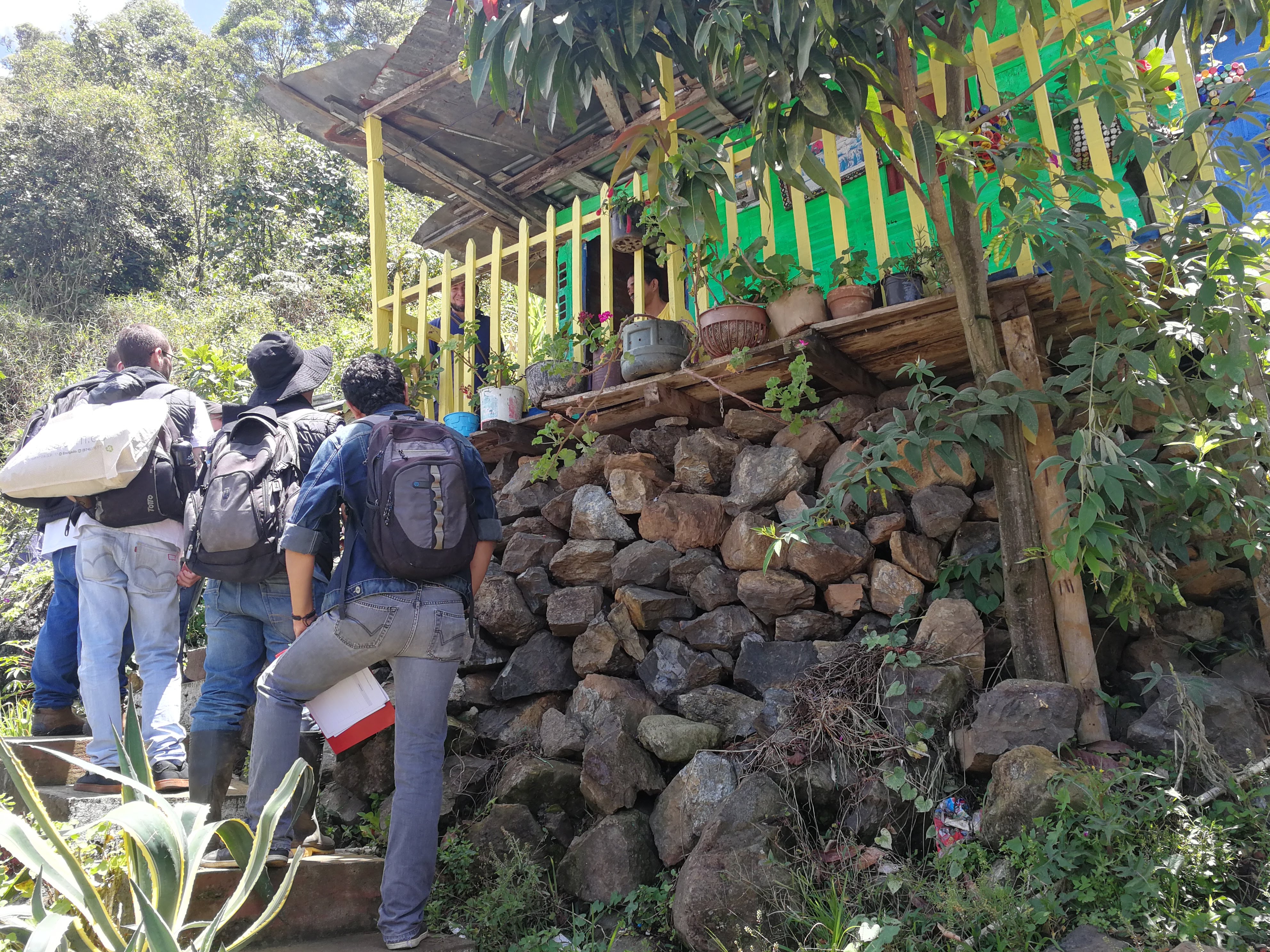 También se plantearon inquietudes sobre la relación entre el ser humano y su entorno, y como, por ejemplo, un suelo puede resistir una vivienda de un piso, hasta de dos, pero al tirar el tercer piso es más factible que haya un quiebre en el equilibrio. Se ilustra una imagen en la que se dibuja la montaña, y como de ahí se quita tierra para construir una vivienda. Se ilustra como la humedad se va acumulando debido a la intervención humana, y esta acumulación influye sobre el riesgo de un deslizamiento. Se genera un debate sobre la mitigación en este caso con muros de contención y canoas. Esto se proyecta como una forma de reducción de la vulneración, en tanto al focalizar una sola agua, se mitigan las relaciones negativas con la humedad.