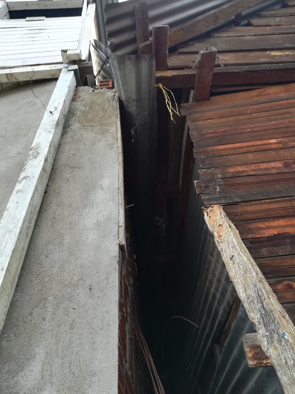 Otro factor bastante discutido respecto a la vulnerabilidad física giró en relación a la falta de canoas y bajantes, ya que gran porcentaje del barrio no tiene. Por lo tanto, es prioritario avanzar en un plan de canoas y bajantes como medida de mitigación. A pesar del apoyo del equipo técnico del proyecto, la apuesta de consolidación de plan de canoas y bajantes debe surgir como insumo familiar y comunitario. Se indaga sobre la posibilidad de pensarse convites para recolectar recursos para la financiación de las canoas y bajantes que podría llegar a costar unos 300.000$ pesos. Se aclara la importancia de este insumo en tanto de gotica en gotica los barrancos van cediendo. Entre la comunidad se relaciona la situación de las canoas y bajantes con otras dificultades sociales, como las aguas que caen de una vivienda a otra y obstaculizan las relaciones vecinales.