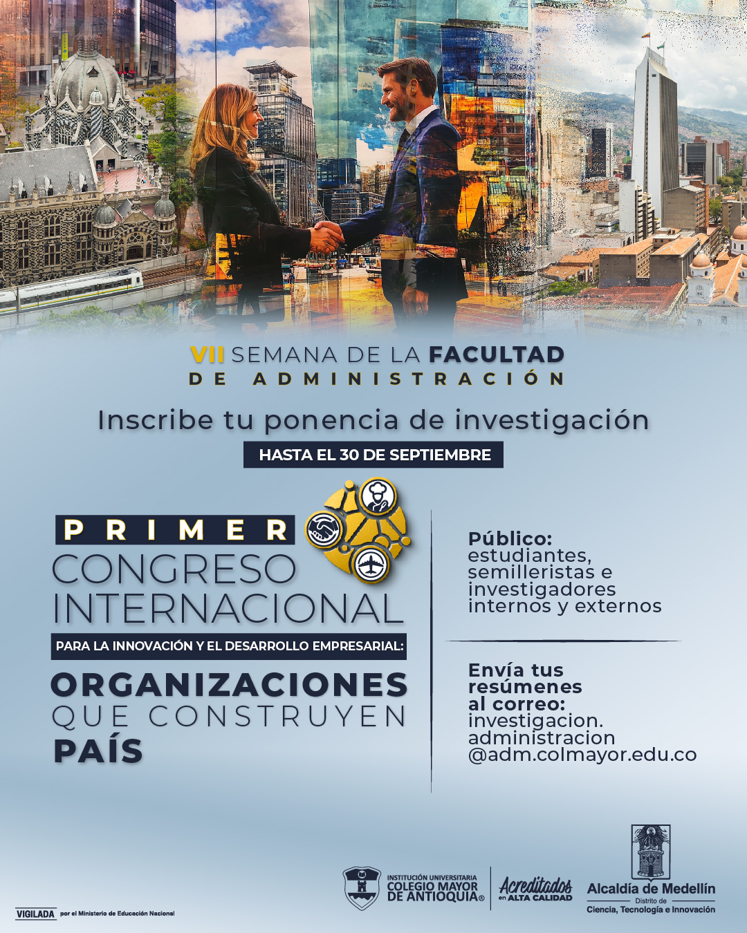 Durante seis años consecutivos La Facultad de Administración y el Grupo de Investigación Empresarial Turístico -GIET- de la Institución Universitaria Colegio Mayor de Antioquia han organizado un espacio de reflexión académica e investigativa entorno a los campos disciplinares del turismo, la gastronomía y el mercadeo bajo la denominación de Simposio internacional para La Innovación y Desarrollo Empresarial. Este año buscando un alcance e impacto académico mayor para los participantes, transformamos el simposio en el I Congreso Internacional Para La Innovación y Desarrollo Empresarial “Organizaciones que Construyen País”, con un comité científico conformado por investigadores nacionales e internacionales de alto nivel y trayectoria en los ejes temáticos del congreso.