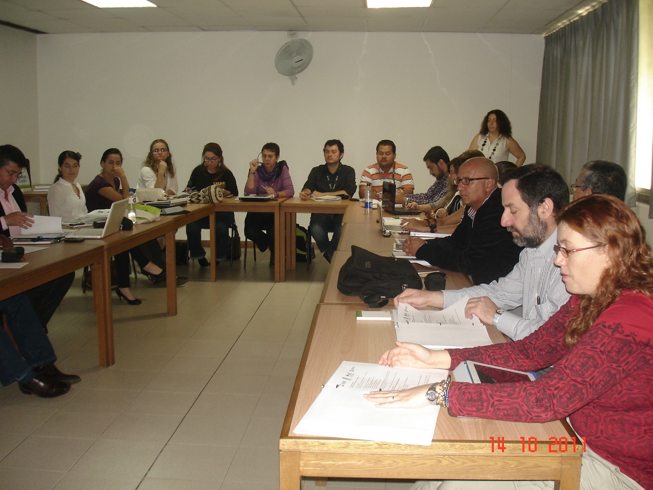 El día 14 de octubre se realizó una jornada de trabajo con los profesores nacionales e internacionales con el fin de realizar un debate en torno al diagnóstico del estado de la docencia, investigación y la extensión en la Gestión del Riesgo de Desastres, diagnóstico que fue elaborado previamente por las Universidades participantes, y posteriormente se trabajó en torno a una plenaria para la elaboración del direccionamiento estratégico del trabajo en conjunto que se desarrollará a futuro.