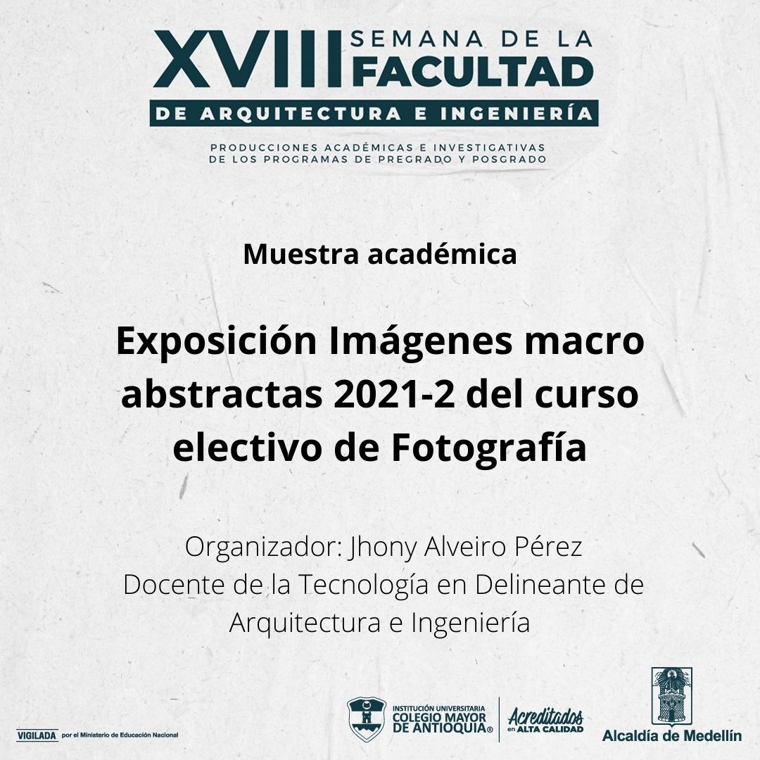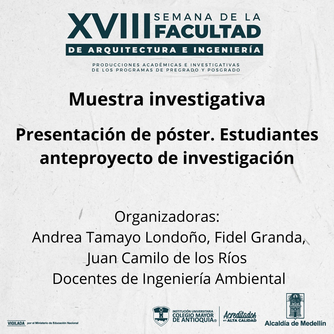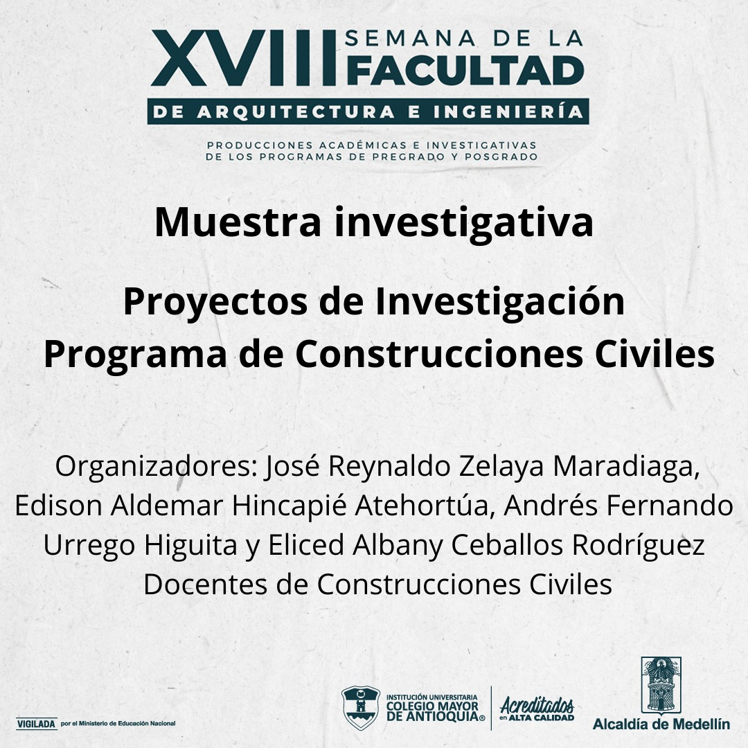 18a Muestra de producciones académicas e investigativas de los programas de Construcciones Civiles, Ingeniería Ambiental, Arquitectura, Tecnología en Delineantes de Arquitectura e Ingeniería, Tecnología en Gestión Catastral y Tecnología en Gestión Ambiental.