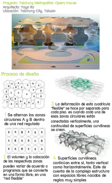 En segundo lugar, las herramientas generativas relacionan el diseño con los procesos naturales, tanto en los aspectos constructivos (bioingeniería, bioarquitectura) cuanto en los aspectos formales. Aquí las simulaciones y los modelos matemáticos permiten aprovechar creativamente de la complejidad y de la belleza de la naturaleza, ampliando notablemente las posibilidades creativas del diseñador.4