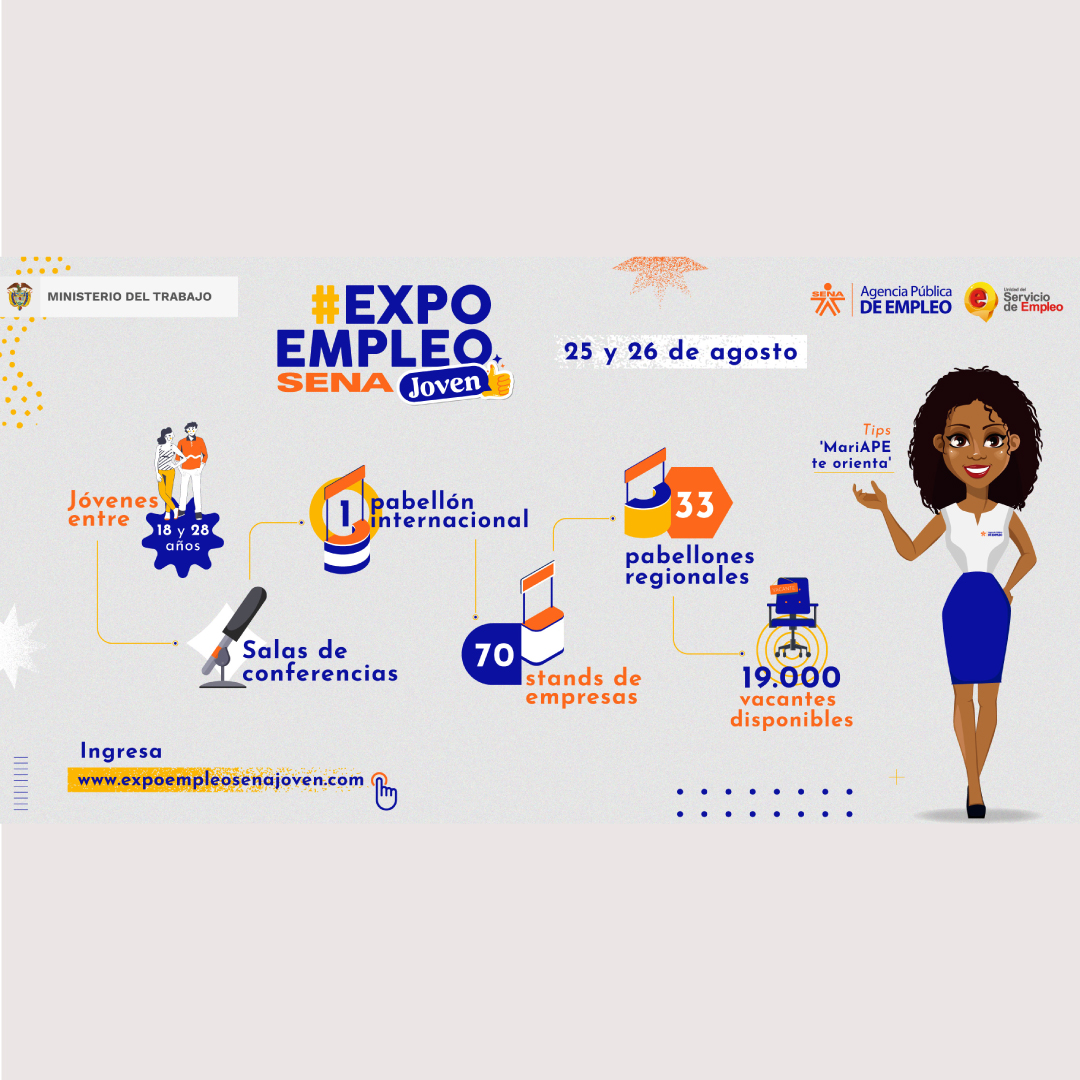 Bienestar General Noticias ExpoEmpleo Joven agosto 22, 2022. El evento virtual será el 26 y 27 de agosto.