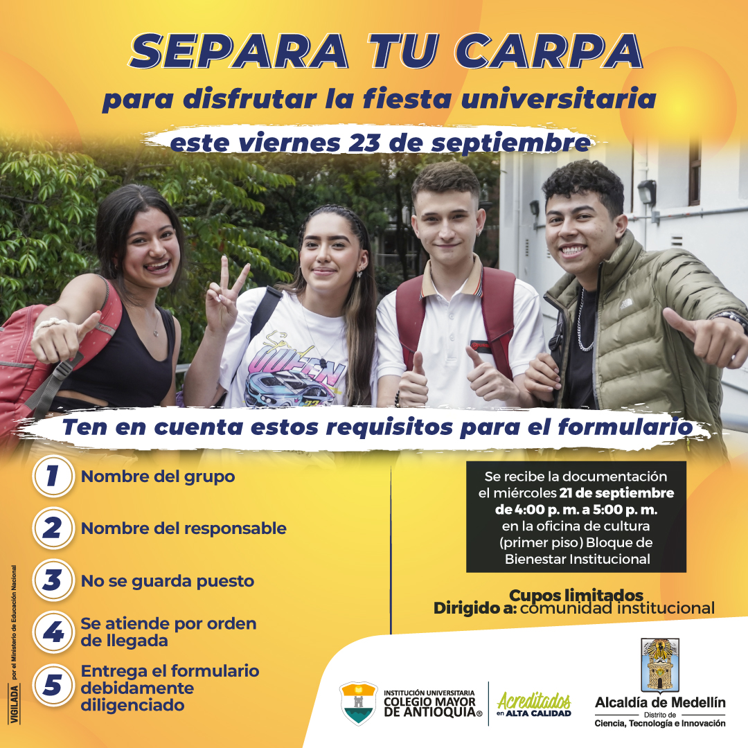 Bienestar General Noticias Separa tu carpa para disfrutar la Fiesta Universitaria septiembre 20, 2022. Conoce los requisitos.