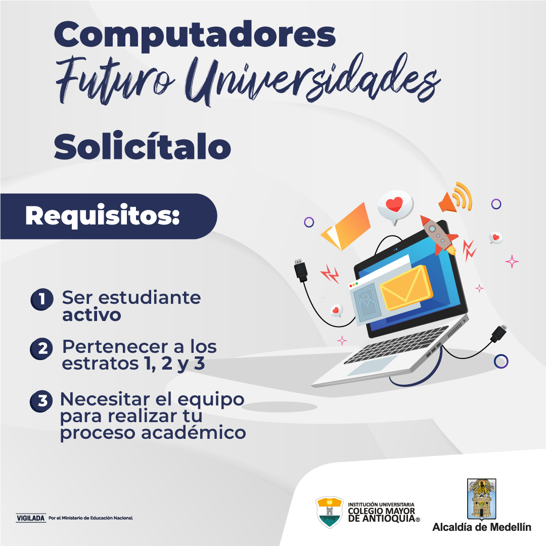 Bienestar General Noticias Computadores Futuro Universidades febrero 24, 2022. Solicítalo inscribiéndote.