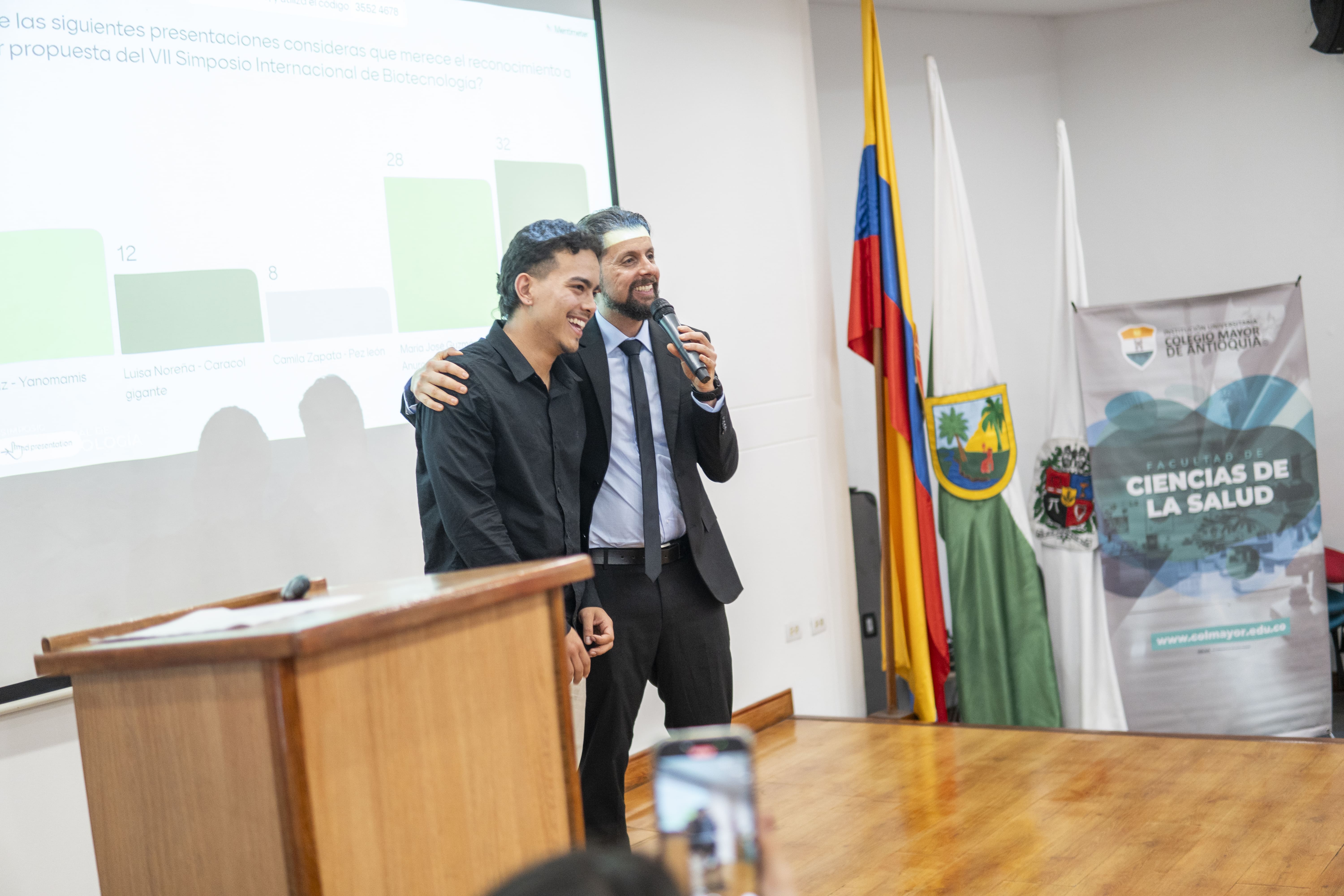 La Muestra Biotecnológica reunió a más de 300 asistentes y presentó 36 pósteres de investigación desarrollados por estudiantes, semilleros y egresados. Siete de estos trabajos fueron reconocidos por su calidad, incluyendo proyectos sobre alternativas proteicas a partir de lenteja de agua y producción de enzimas mediante hongos nativos usando residuos de café y plátano. También se presentaron tres investigaciones lideradas por estudiantes del Colegio Loyola con el acompañamiento de la Tecnoacademia-SENA.