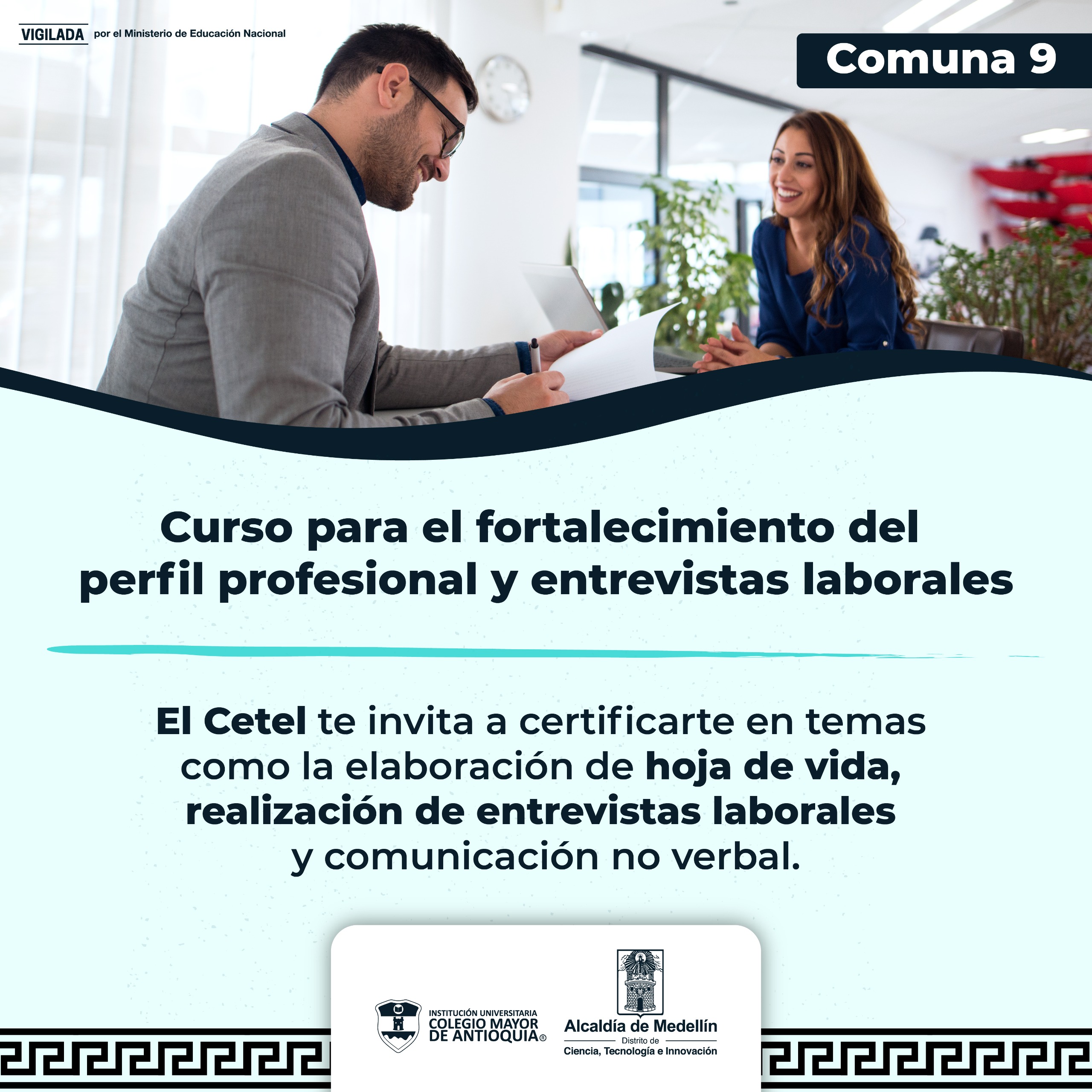 General Noticias Noticias CETEL Comuna 9 fortalece tu perfil profesional y aprende cómo participar en una entrevista de trabajo agosto 29, 2024. Curso para graduados de las tres IES beneficiarios de PP convenio directo y la comunidad en general de la comuna 9.