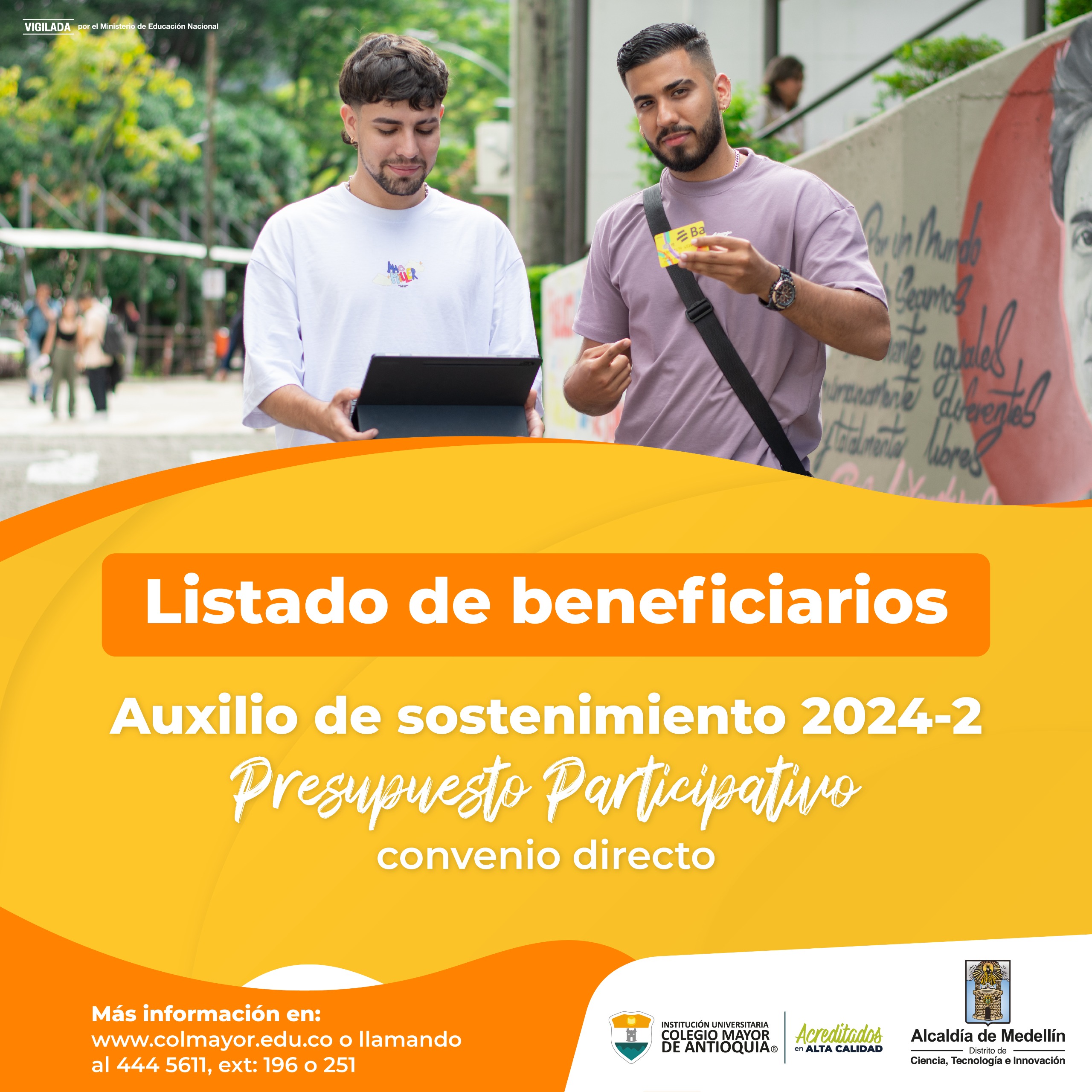 Convocatorias PP General Noticias Listado de beneficiarios – Auxilio de sostenimiento PP convenio directo 2024-2 septiembre 3, 2024. Conoce el listado.