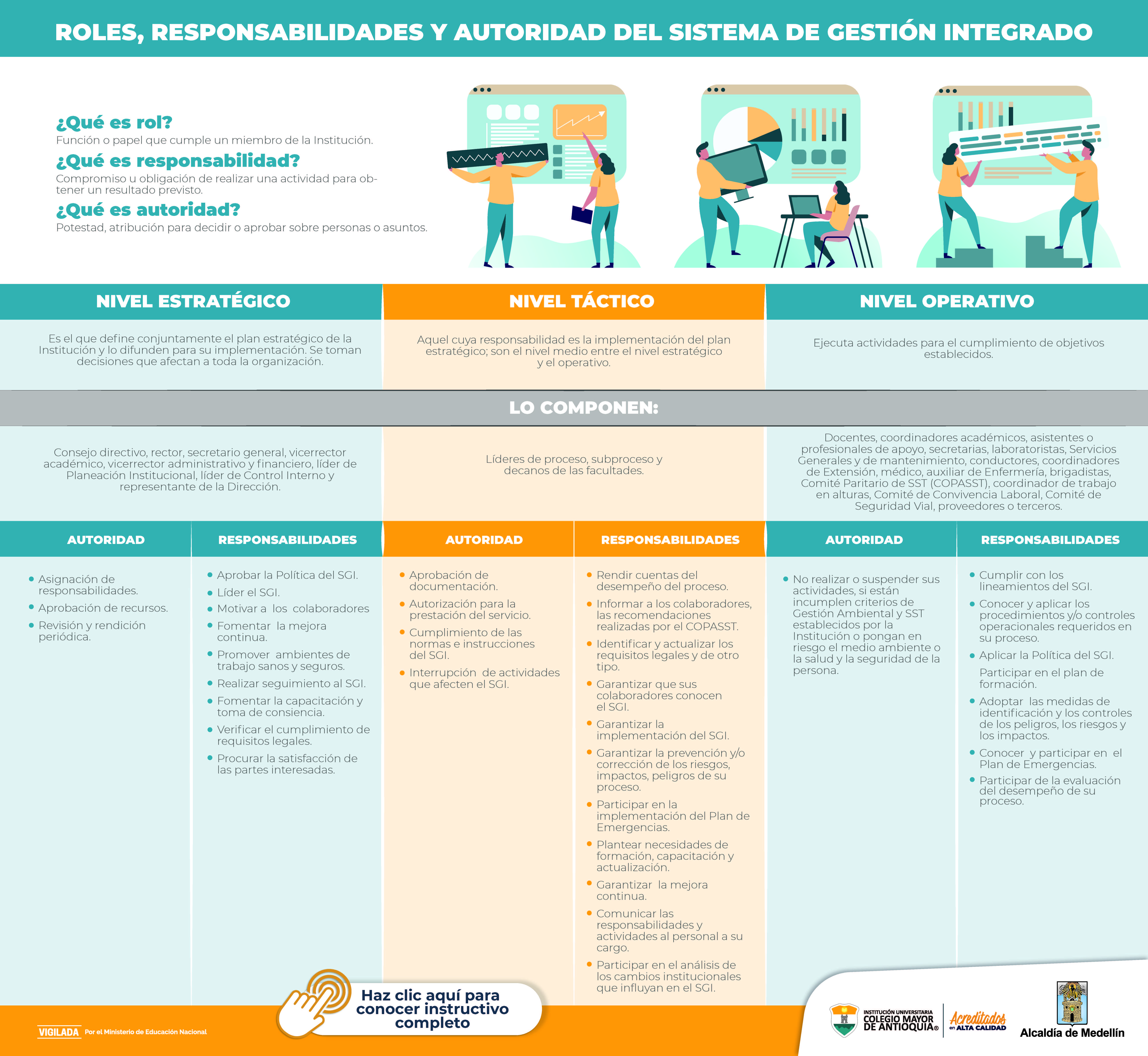 La identificación y comprensión de los roles y responsabilidades dentro del SGI sirven para dirigir y ejecutar los procesos y actividades de conformidad con la misión Institucional.